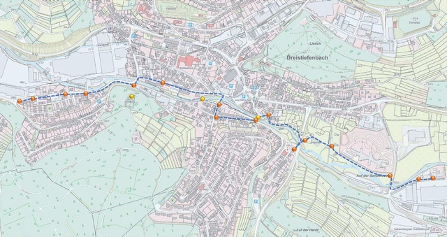 Altes Wasserwerk ... Kölsch-Fölzer-Werke ... Wirzwiese ... Alexanderbrunnen ... Alexanderquelle ... Zinsenbach ... Dreisbacher Mühle ... Alter Backes ... Wernsbach Alte Bahnbrücke ... Alter Bahnhof ... Alte Burg ... Waggonfabrik ... Blashütte ... Buntmetallgießerei Beim Reckhammer