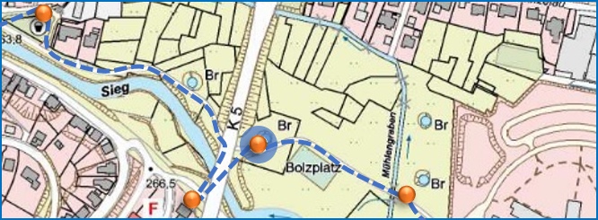 Wie man sieht, lag die ursprüngliche Alexanderquelle in un­mit­tel­barer Nähe zum Brunnen 4 der Erweiter­ung von 1958, viel­leicht sogar an der selben Stelle.