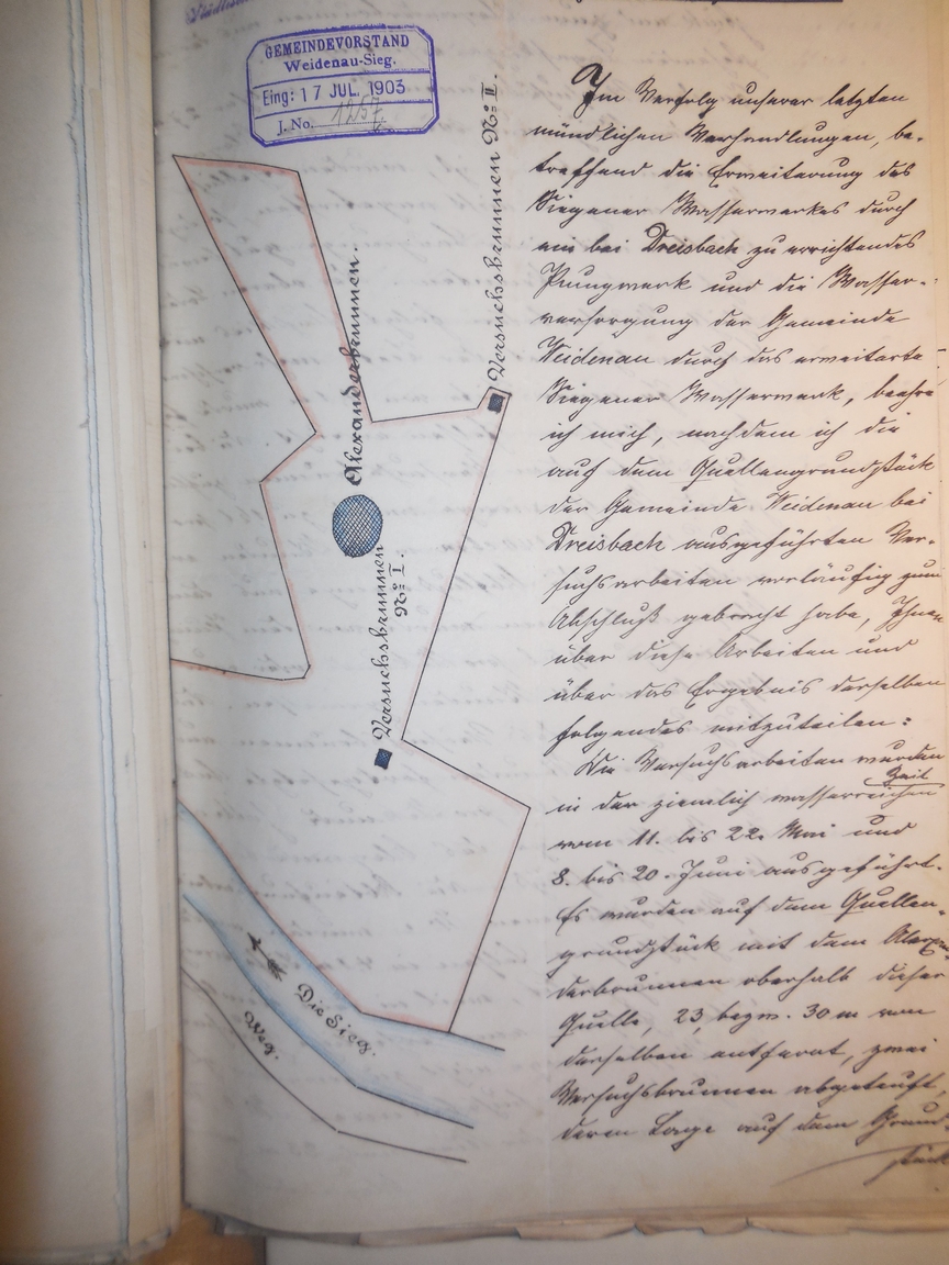 Als die Stadt Weidenau die Tauglichkeit der Alexanderquelle erkundete wurde darüber ein Bericht ver­fasst, der erkennen lässt, dass es sich bei der Quelle in der Ur­auf­nahme um die Alex­ander­quelle handelt.