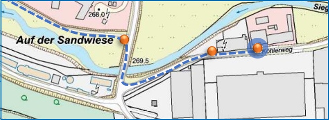 Die Stadt Siegen hatte ähnliche Probleme mit der Trink­wasser­versorg­ung der um 1900 stark wachsenden Bevölker­ung und der eben­falls expand­ierenden Indu­strie wie die Gemeinde Weidenau. Diese hatte sich den Alex­ander­brunnen in der Dreis-Tiefenbacher Sieg­aue erschlossen. Ganz in der Nähe, auf dem anderen Sieg­ufer, baute Siegen ein Wasser­werk. Das war 1913, zur sel­ben Zeit, in der auch die Siegen-Lothringen Werke, die spä­teren Kölsch-Fölzer-Werke, entstanden, genau gegen­über dem Wasser­werk Siegen.