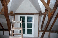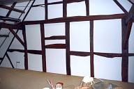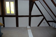 Dez. 2013  -  Lehmputz/Anstrich am Frontgiebel & Heizkörper wieder angeschlossen